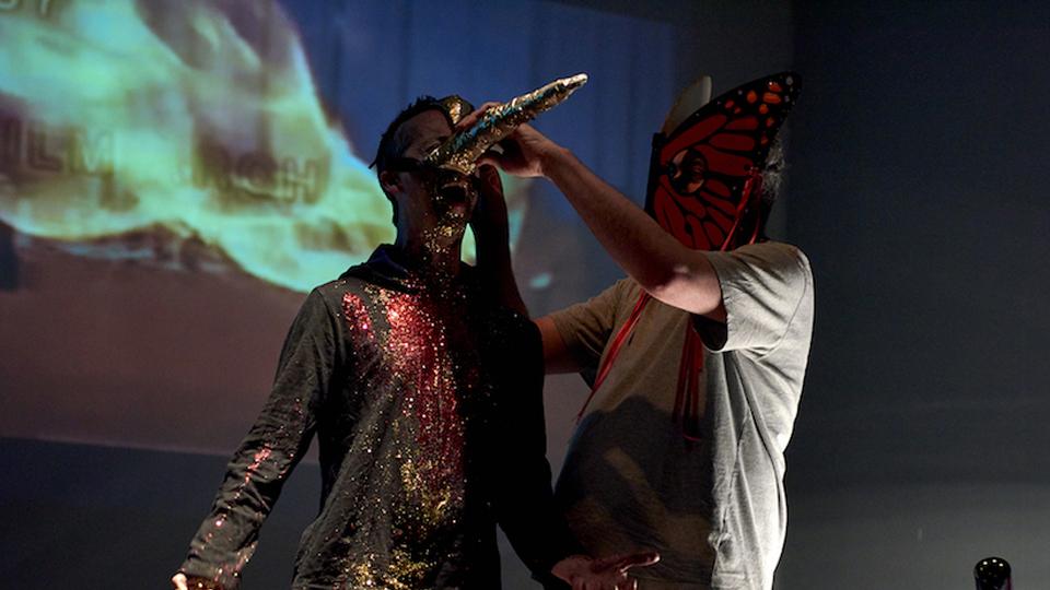 In Gallery Square, visitors were treated to a surreal performance by Plastique Fantastique and Benedict Drew, telling the story of the meme-animals and avatars of Zero City through music, masked performance and projections.