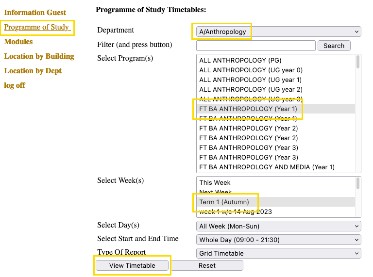 - If you are on a mobile device, it might be better to select 'List timetable' from 'Type of Report'