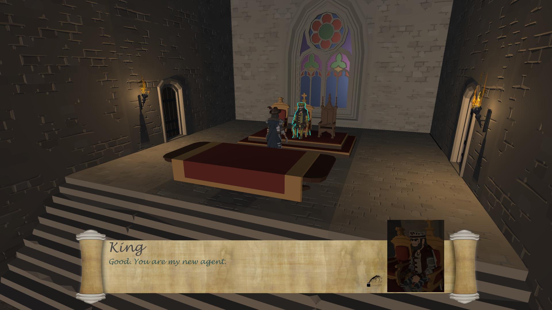 Russ' final thesis project was centred around the idea of branching narrative and having a game provide new choices to a player based on previous actions. The game, titled 'A Party to Murder', tasked the player with instigating non-player characters to commit murder at a banquet, at the behest of the King, through the use of selectable interactions and narrative choices.