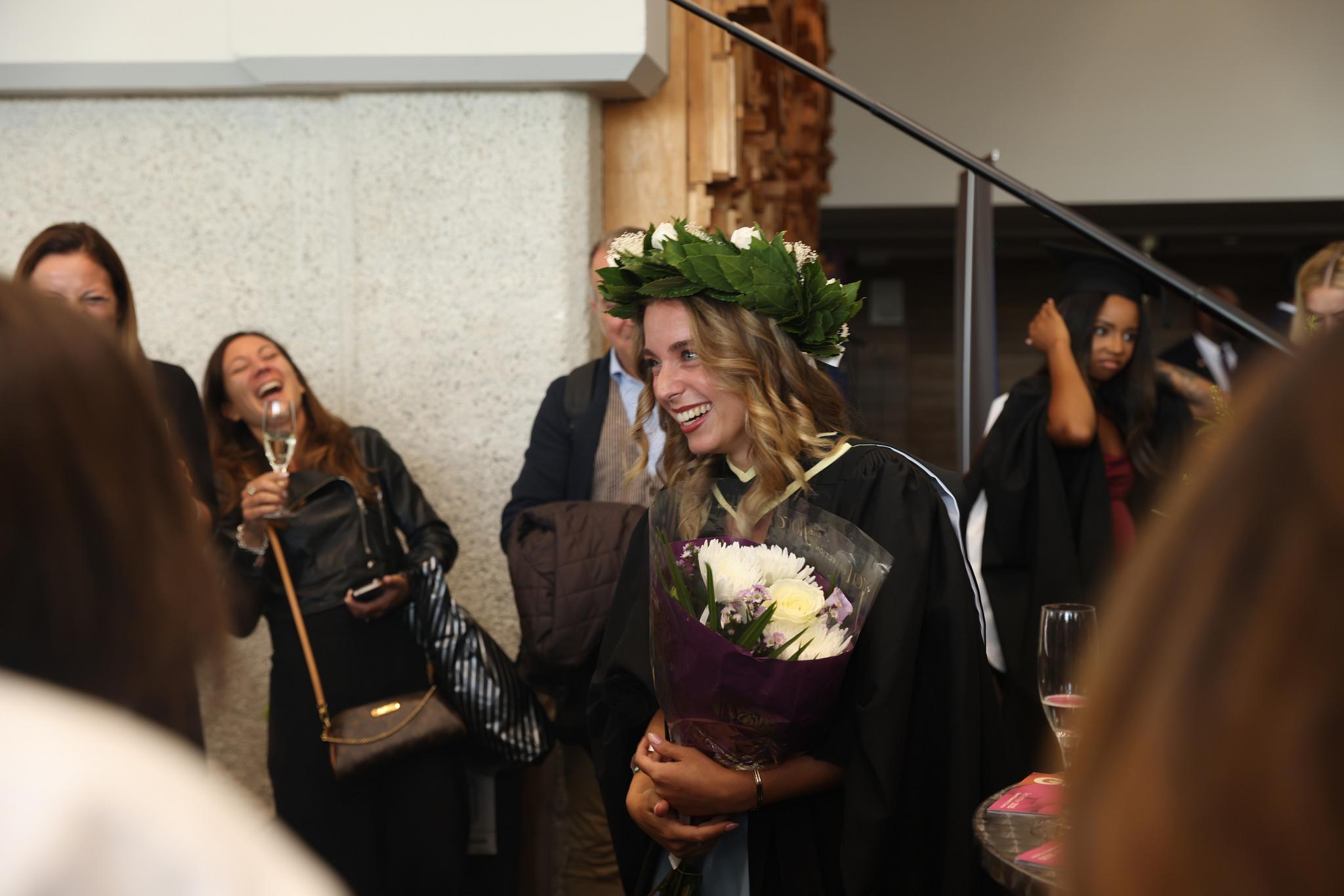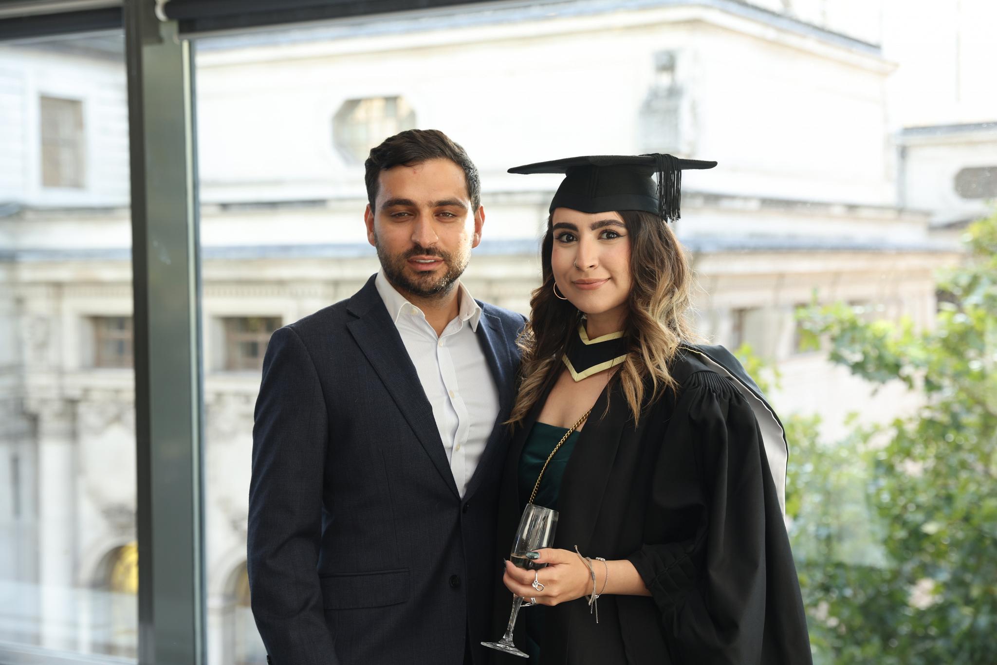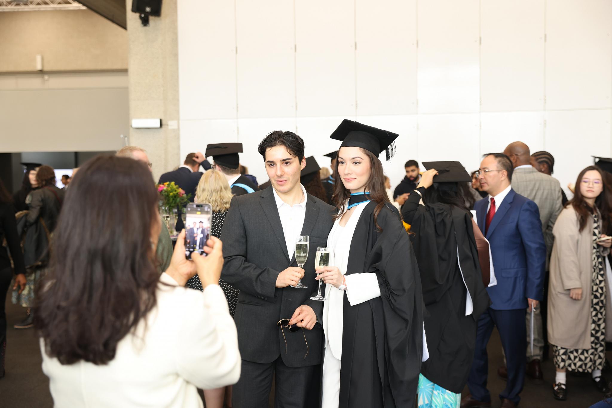 The reception takes place immediately following the ceremony. It lasts for around an hour and gives you, fellow graduate, guests, and Goldsmiths staff the opportunity to celebrate your achievements. The reception is for ticket-holders only: anyone without a ticket will not be allowed to enter.